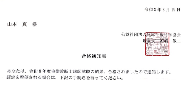 毛髪診断士講師試験に合格しました💕さらに精進していきます(#^.^#)